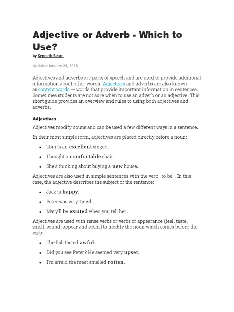 Adjective Or Adverb Pdf Adverb Adjective